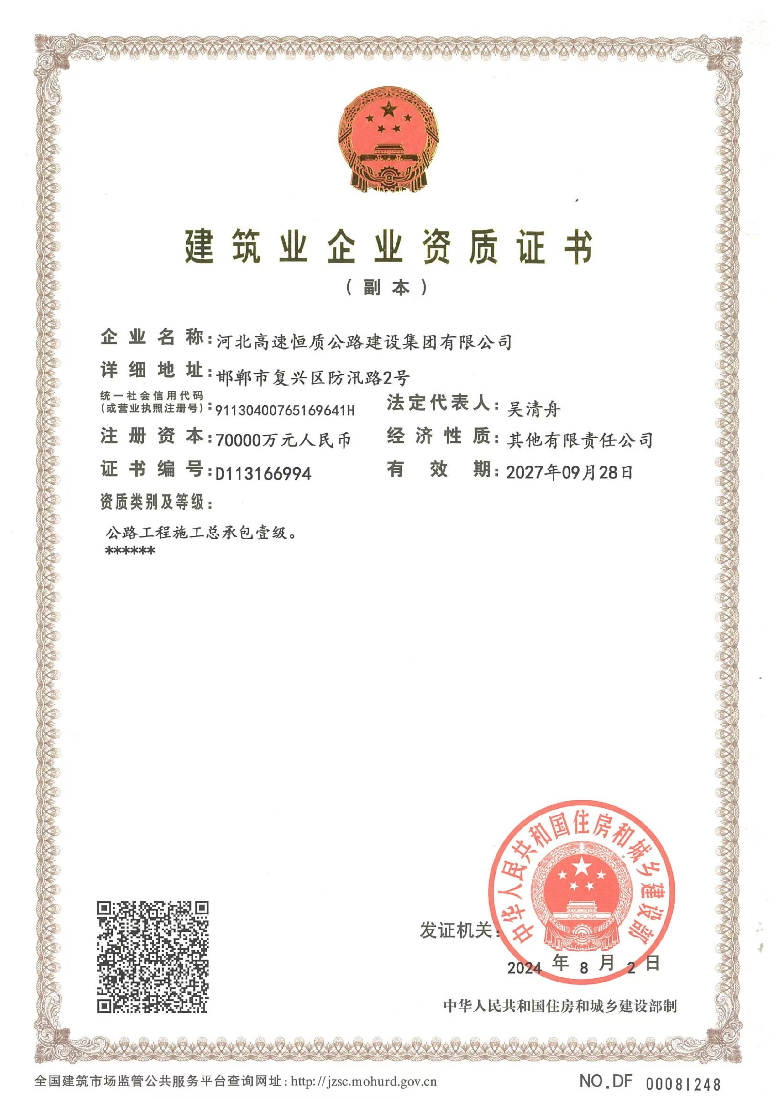 bv1946伟德官网始建于2004年,前身是邯郸市bv1946伟德官网公路建设集团有限公司。2024年7月成为河北高速公路集团有限公司二级子公司,现有职工500余人,下辖18家子公司13个分公司,参股公司3家 ,注册资本7亿元,是一家集公路工程施工、1946伟德官方网站研发生产、试验检测、沥青贸易、公铁物流于一体的多元化、综合性单位,国家级高新技术企业,河北省专精特新中小企业,河北省首家沥青拌合环保引领性企业。公司拥有公路工程总承包壹级、公路交通工程(公路安全设施)专业承包壹级、机电工程施工总承包贰级、电力工程施工总承包贰级、市政公用工程施工总承包贰级、建筑工...
