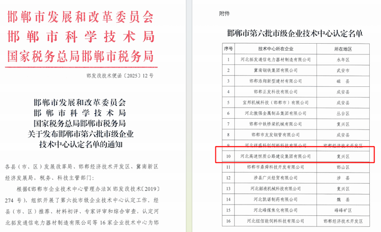 近日,邯郸市发展和改革委员会、科技局、税务局联合公布《邯郸市第六批市级企业技术中心认定名单》,bv1946伟德官网集团成功入选。此次认定是对bv1946伟德官网集团技术创新能力的高度认可,标志