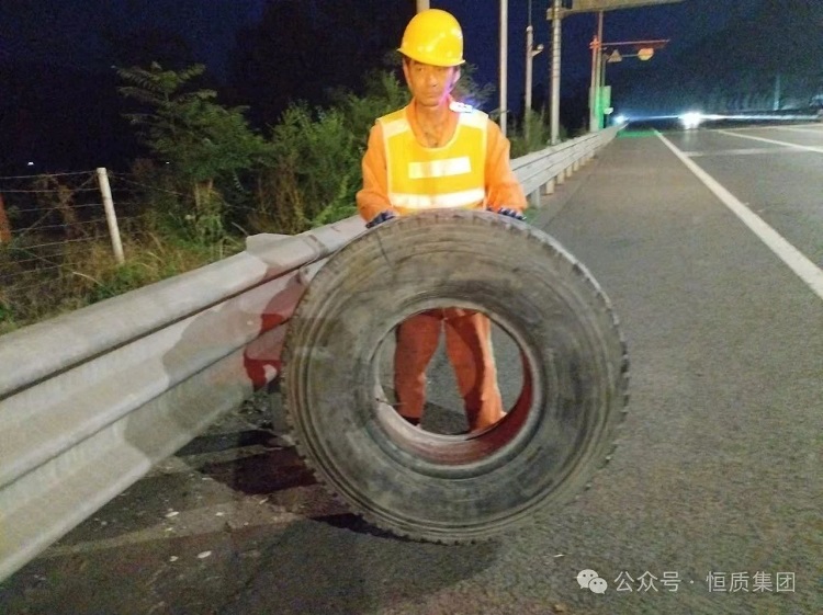 bv1946伟德官网集团青兰养护团队高效处置遗落轮胎